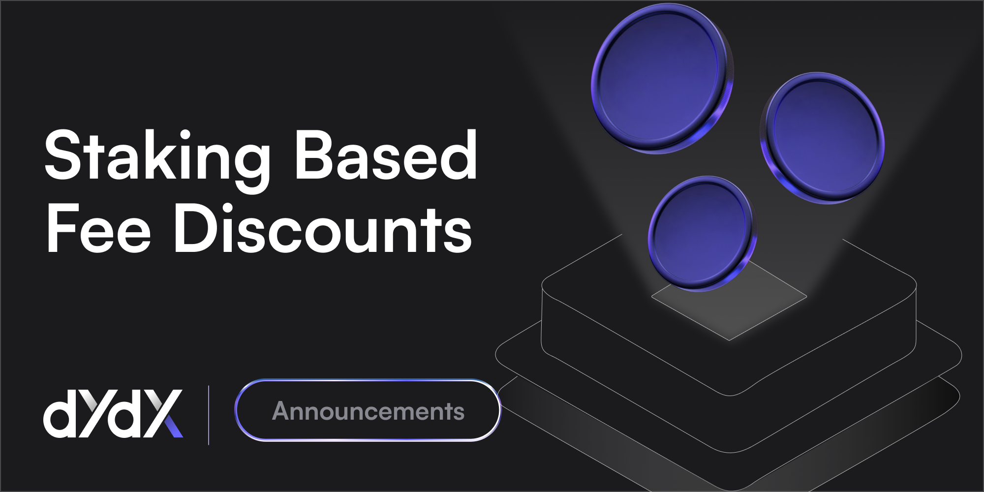 We’re excited to share that the dYdX community has voted to introduce a staking-based fee discount program. This program is designed to reward traders with fee discounts when they stake DYDX.