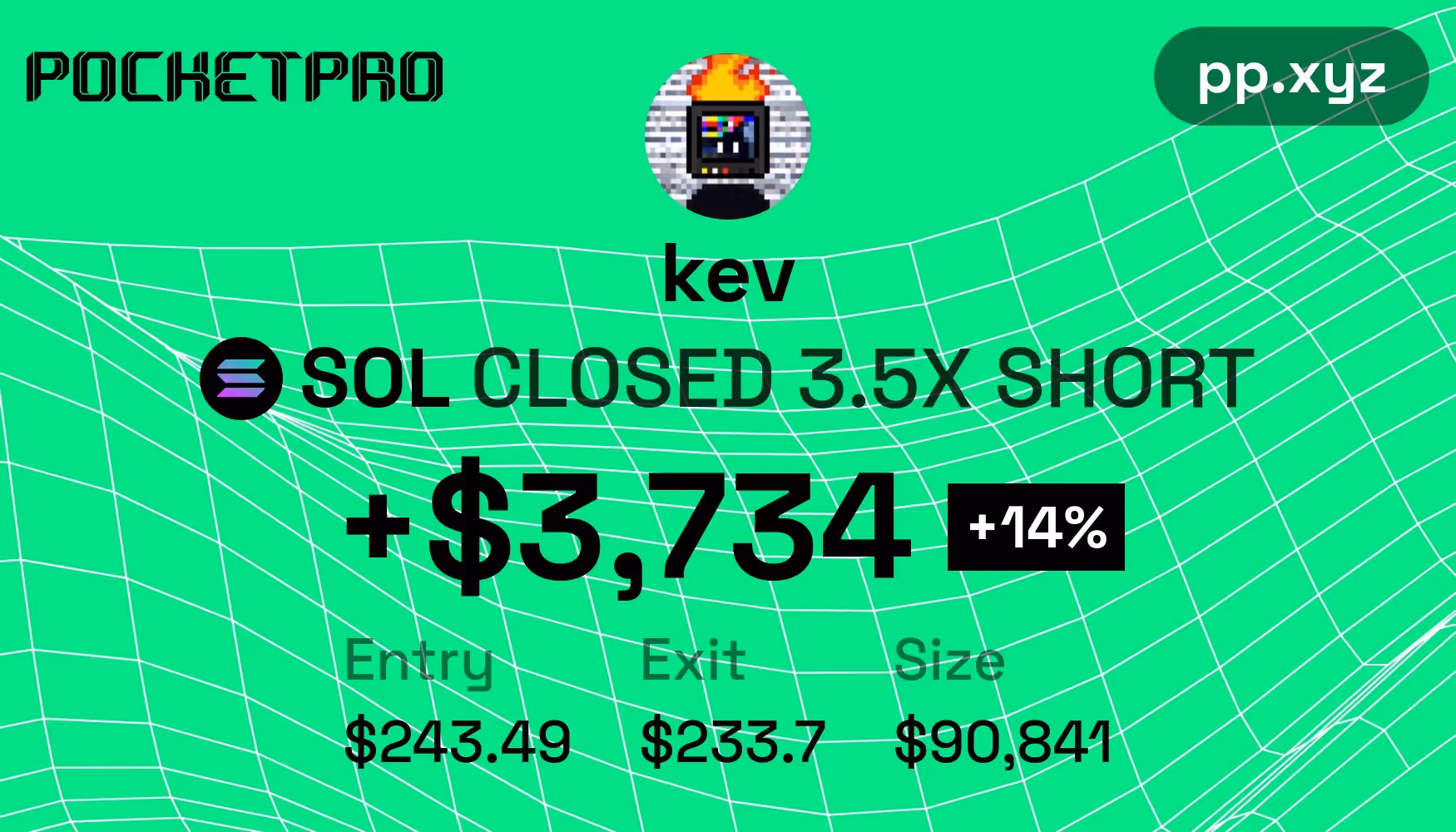 Anytime you close a position on Pocket Pro Bot, it will automatically generate a PnL Card like above. Share this or the trade card to qualify.